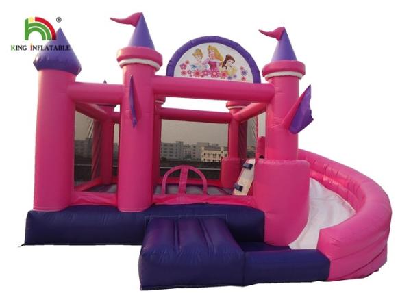 Description: 6m Inflatable Jumping Castle / Large Multiplay Bouncy Castles With Curve Slide